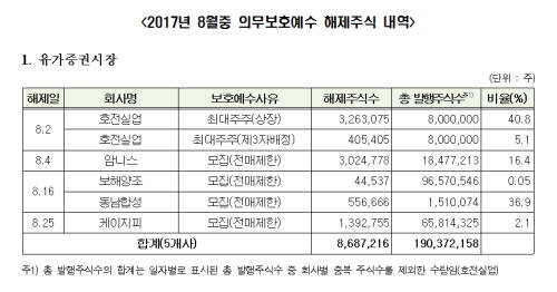호전실업 등 29개사, 내달 중 의무보호예수 해제