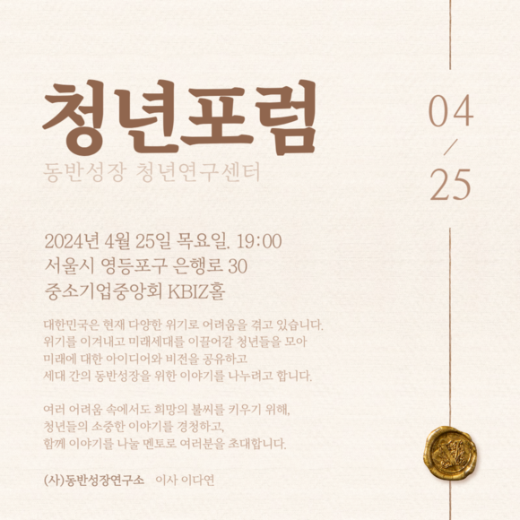 동반성장연구소, 25일 제1회 동반성장 청년 경제 포럼 개최