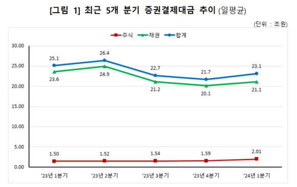 1분기 주식결제대금, 하루 평균 2조원…4분기 연속 오름세