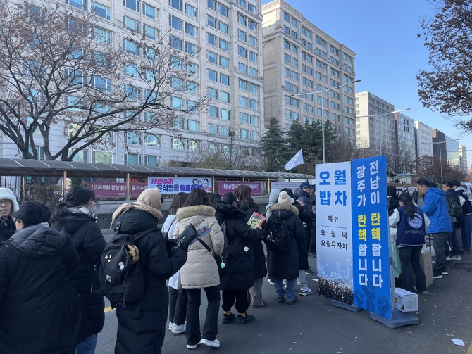 [포토] 윤대통령 탄핵 촉구 집회에 등장한 오월밥차
