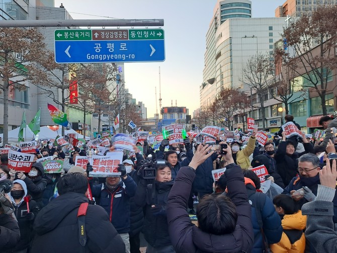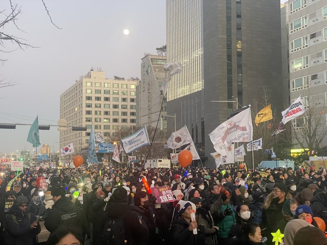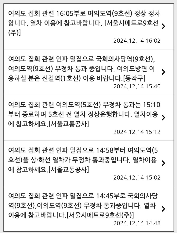 [포토] 윤대통령 탄핵 집회에 유래없는 '여의도 무정차 행렬'