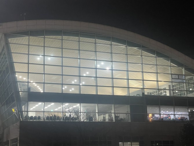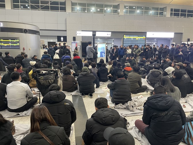 [포토] 날이 저문 무안국제공항, 유리창 건너편 유가족들