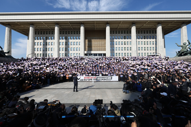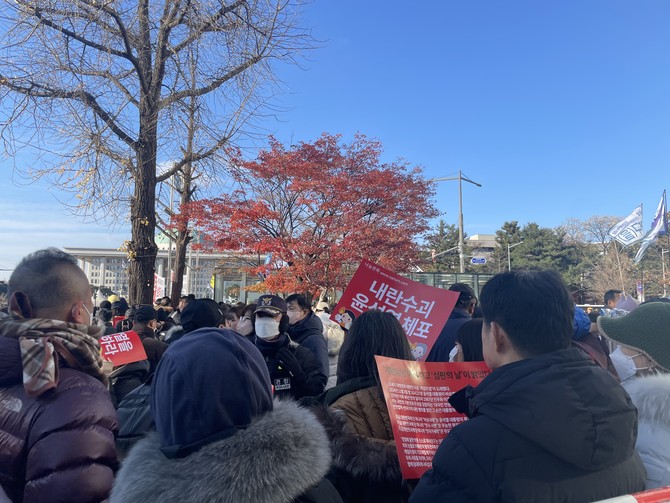 [포토] 국회 앞 시민들 "윤석열은 끝났다"