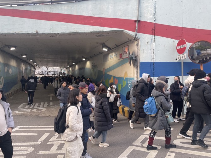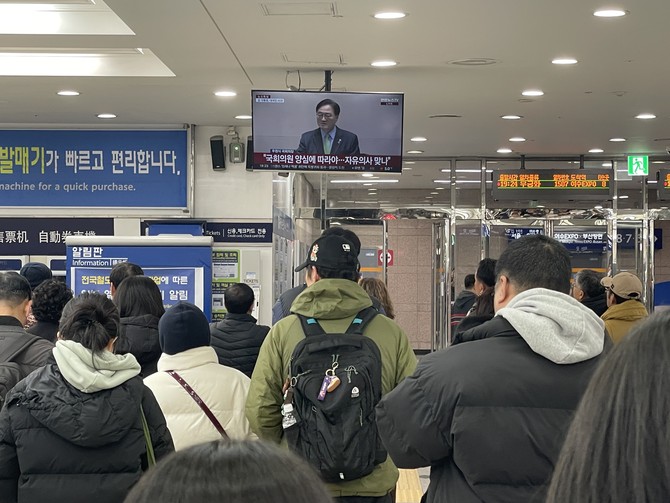 [포토] 지하철역에서 '탄핵 투표' 중계 방송 시청하는 시민들