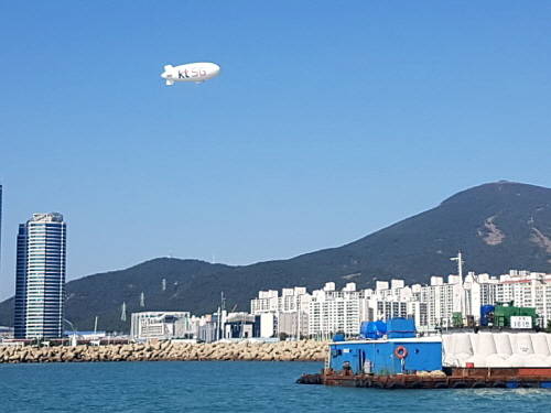[그곳] 부산 바다 상공에 KT '스카이쉽'…"평창올림픽 누빈다"