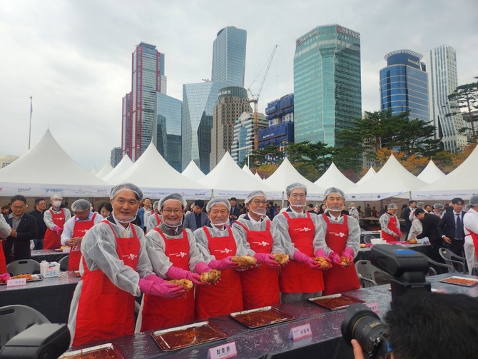 [현장] 금융투자 수장들 총집합…가을비 뚫은 '사랑의 김치'