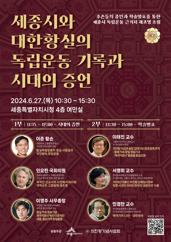 세종시, 27일 '황실 독립운동 근거지 재조명' 포럼 개최