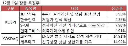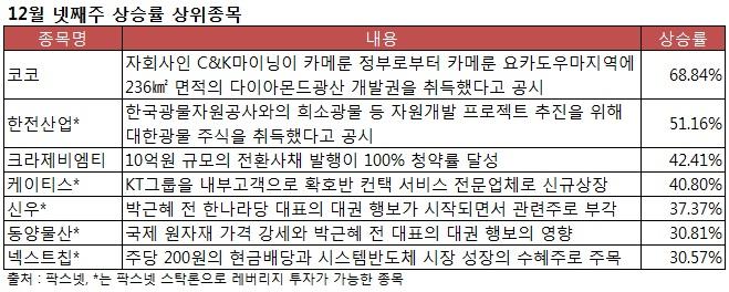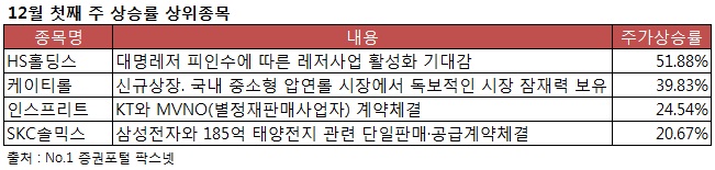 [증권포털 팍스넷 선정] 12월 둘째 주 상승률 TOP 5
